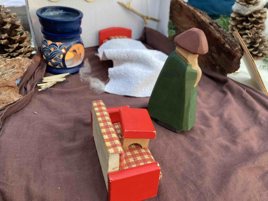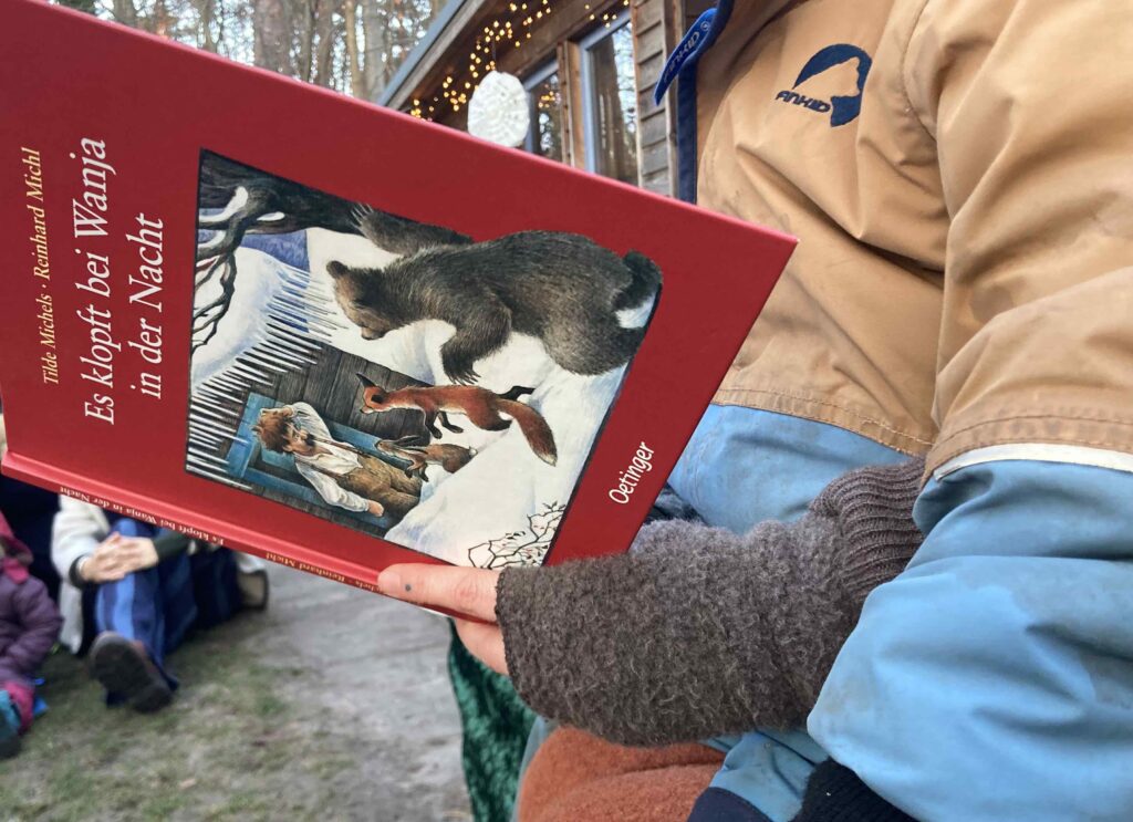 Dann hörten wir eine spannende Wintergeschichte mit Miniatur-Theater: