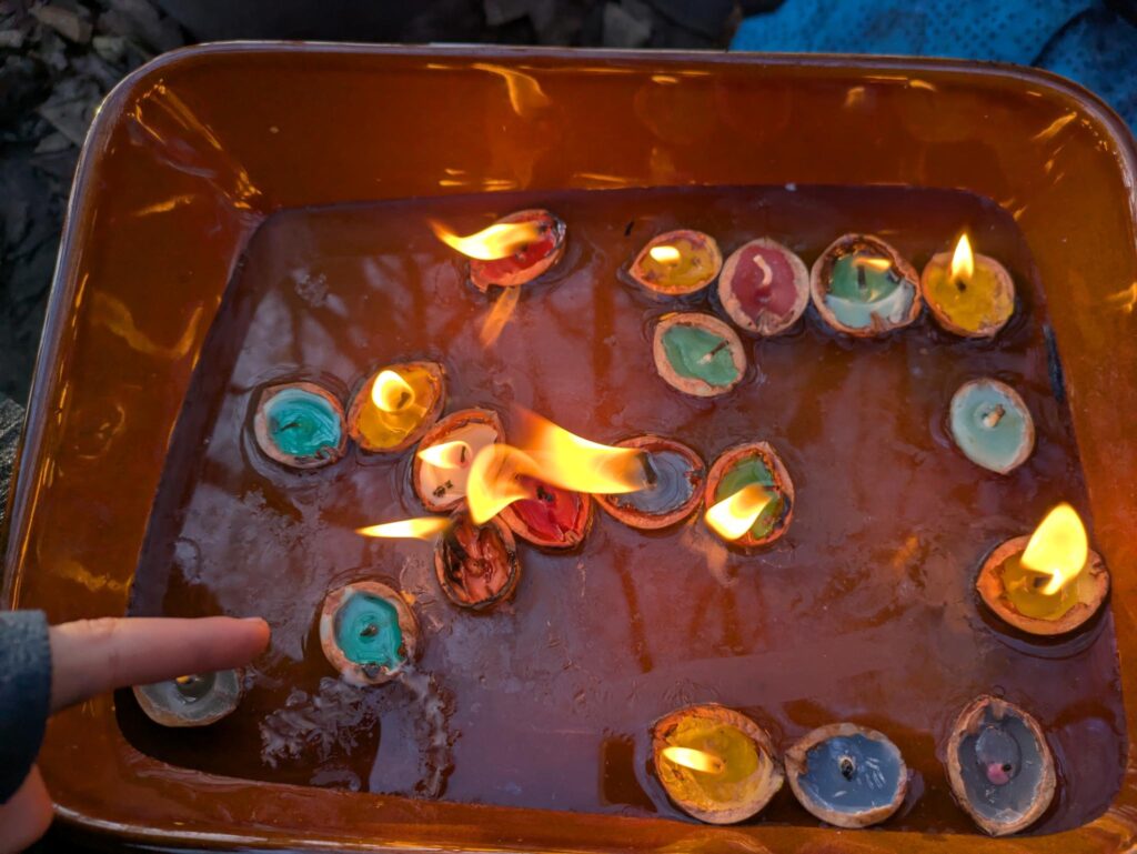 Eine andere Überraschung hat uns einen halben Vormittag beschäftigt und zum Staunen gebracht: Schwimmkerzen. Wir hatten viel Freude dabei, die bunten Schwimmkerzen ins Wasser zu lassen, und stellten fest, dass es gar nicht so leicht ist, sie im schwimmenden Zustand anzuzünden. Diese kleine Herausforderung war eine schöne Einladung zum Experimentieren und Beobachten: