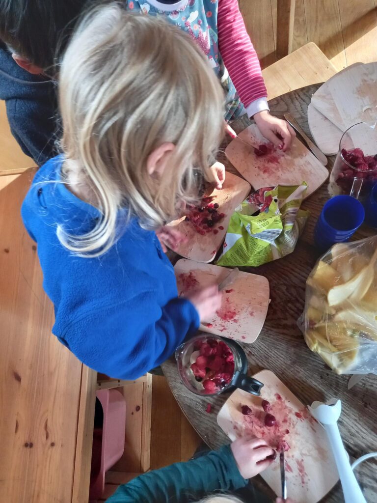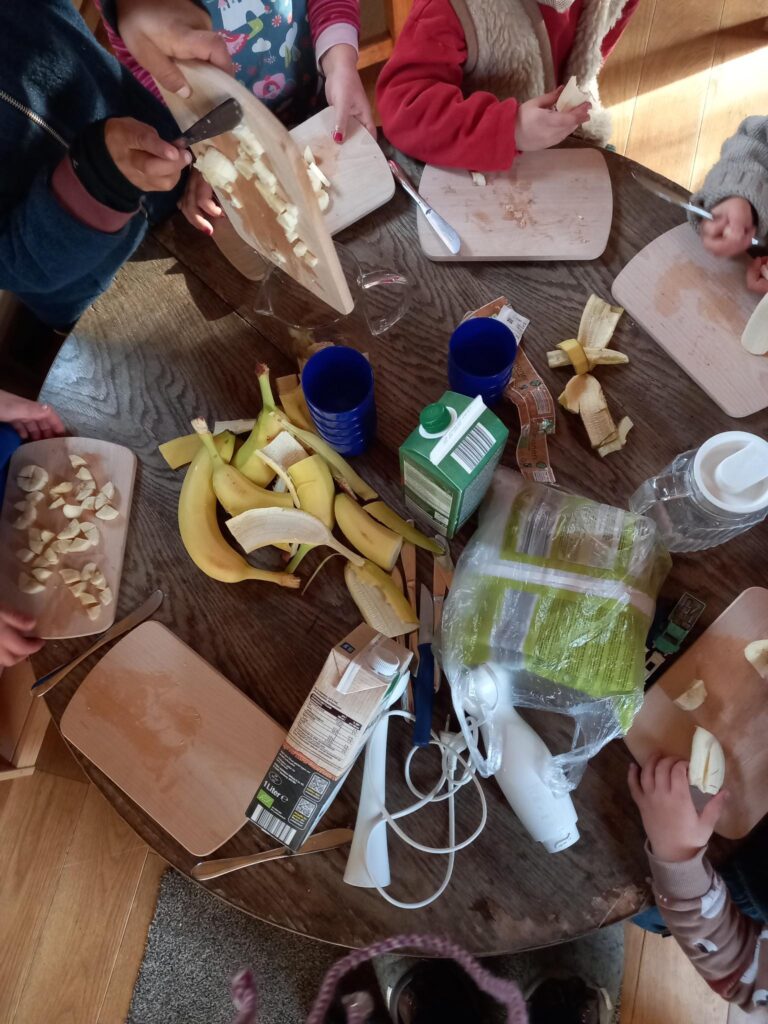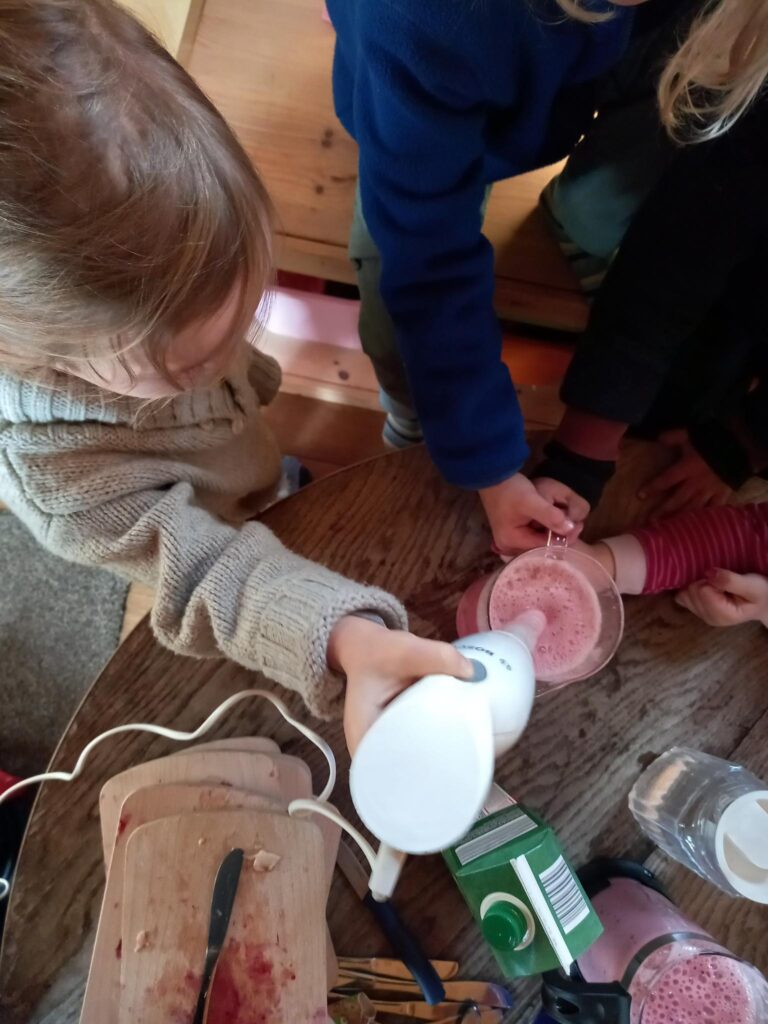 Am nächsten Tag ging es dann weiter im Café: Auf der Speisekarte standen Smoothies und Waffeln, die die Kinder selbst gemacht haben.