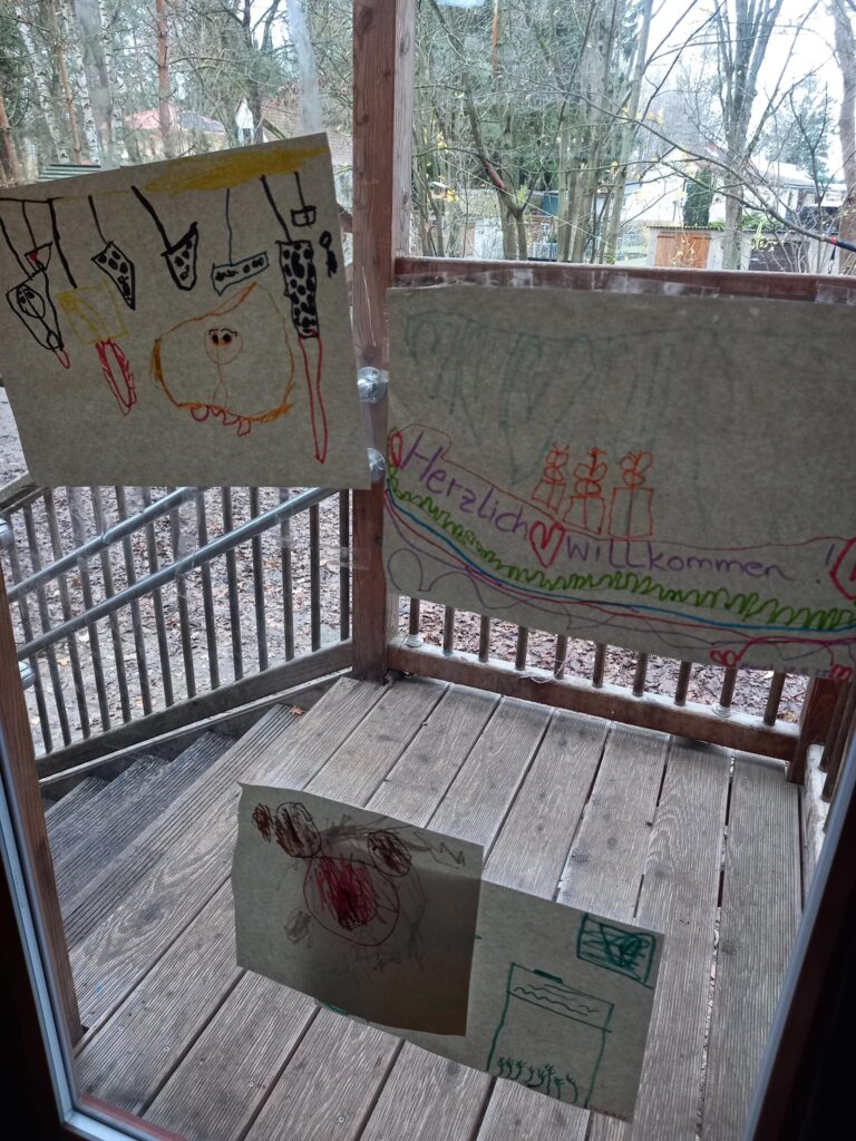 In der Küche kochten die Wald-Kaninchen Getreidekaffee und schnitten Nussecken in kindgerechte Stücke. Im Caféraum haben wir Möbel geschleppt und abgewaschen, Schilder gebastelt sowie Tischdecken und draußen gesammelte Tischdeko arrangiert.