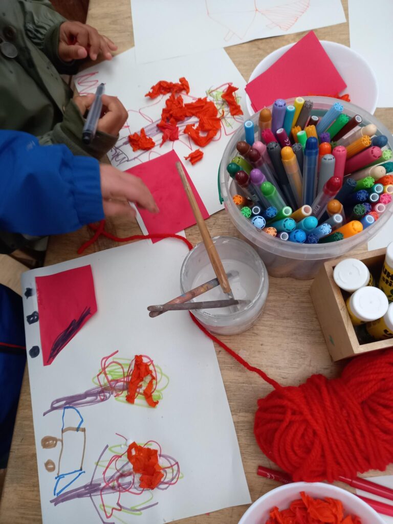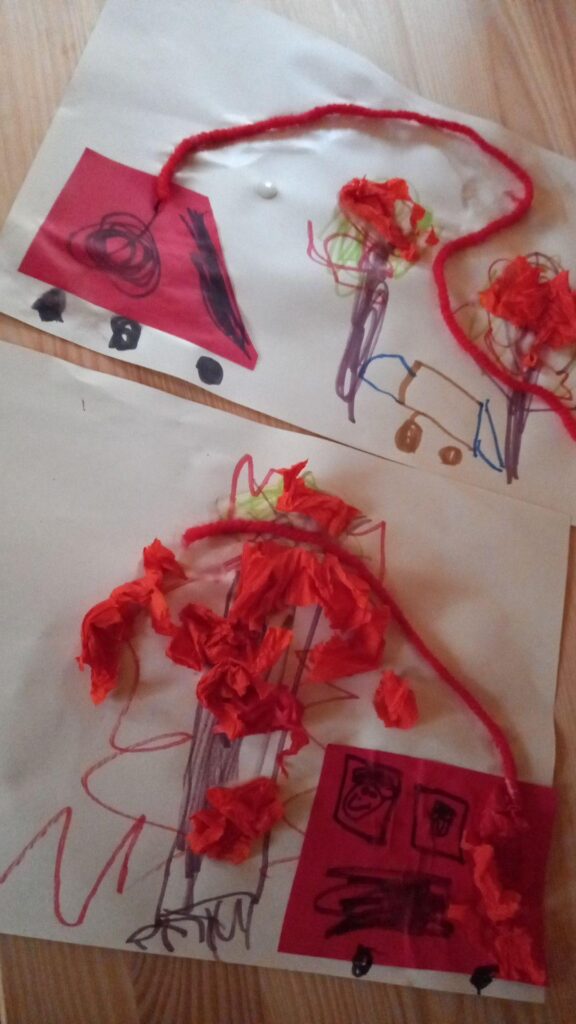 Dann haben wir kreativ zum Thema Feuerwehr gebastelt: