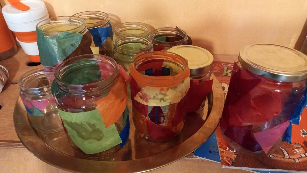 Auch über den Umgang mit Kerzen haben wir gesprochen. Anschließend haben wir gemeinsam Teelichthalter beklebt:
